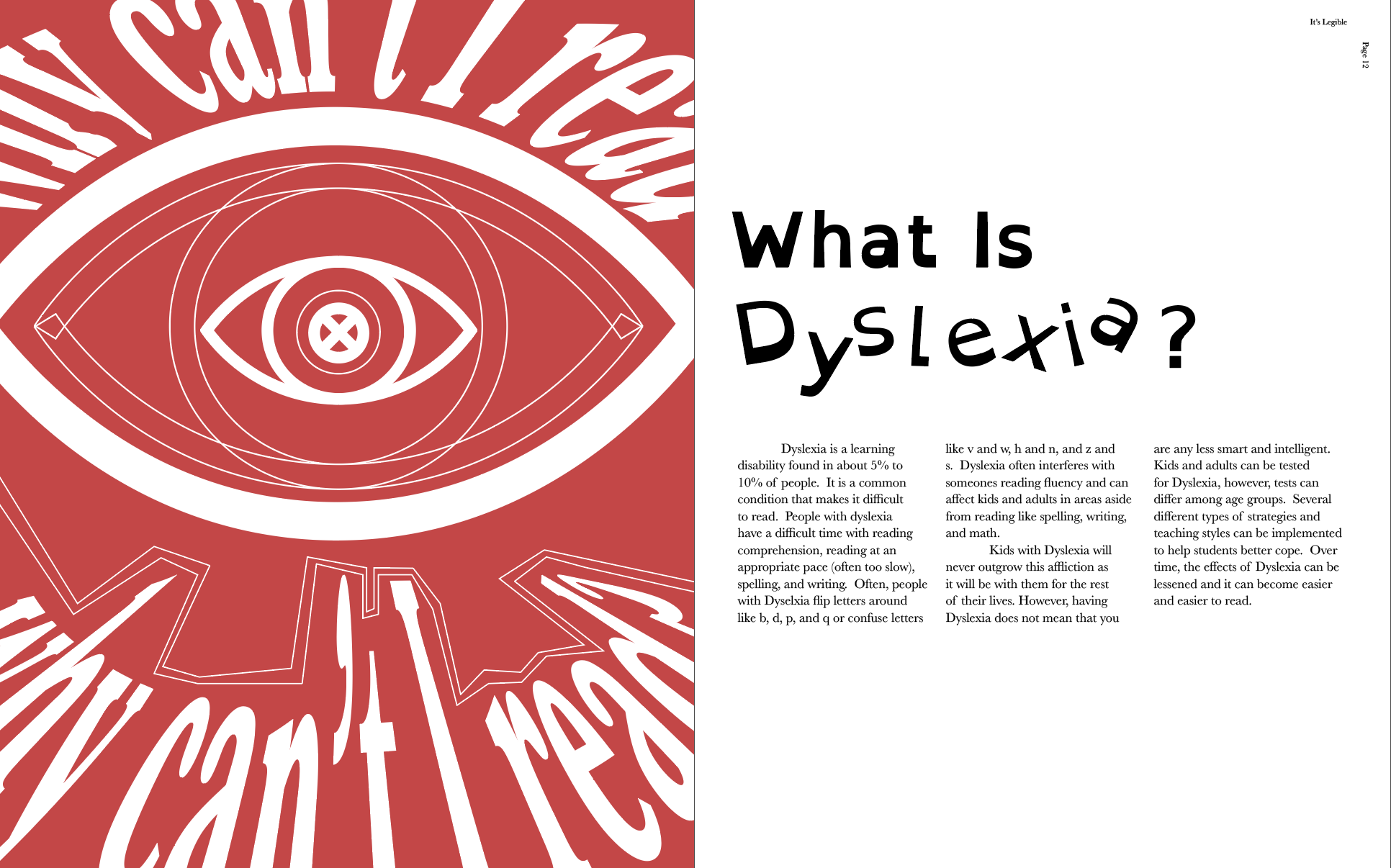 A comparison of two different typefaces, Baskerville is commonplace in publications and writing pieces. I compared this universally-accepted, legible typeface to one that aims to be more easily read by Dyslexic learners. Dyslexie was created to help readers who had trouble reading more typical types due to their learning disability.